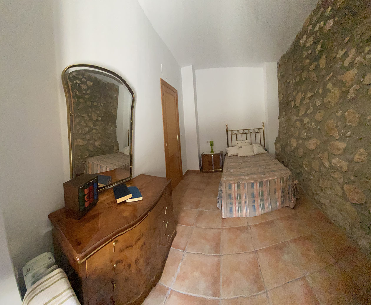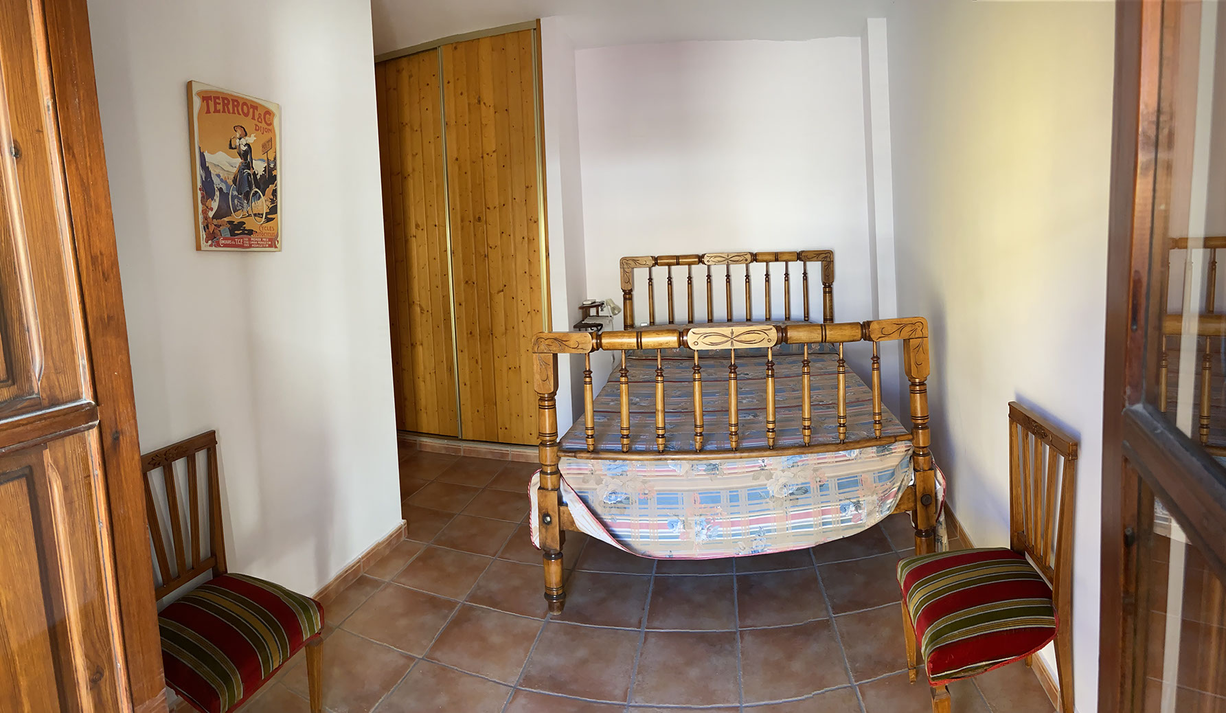 La casa esta distribuida en dos plantas, en la planta baja encontraremos una habitación de matrimonio que cuenta con una cuna, una habitación individual y otra habitación doble con baño incluido.