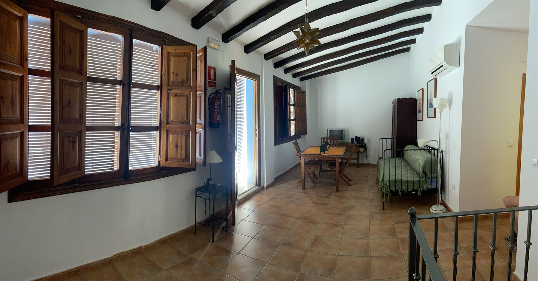 Por la escalera se accede a la planta superior donde localizamos un amplio salón de lectura, donde poder escuchar música, leer, relajarse, ver la televisión, etc. ademas la planta superior cuenta con una amplia terraza.